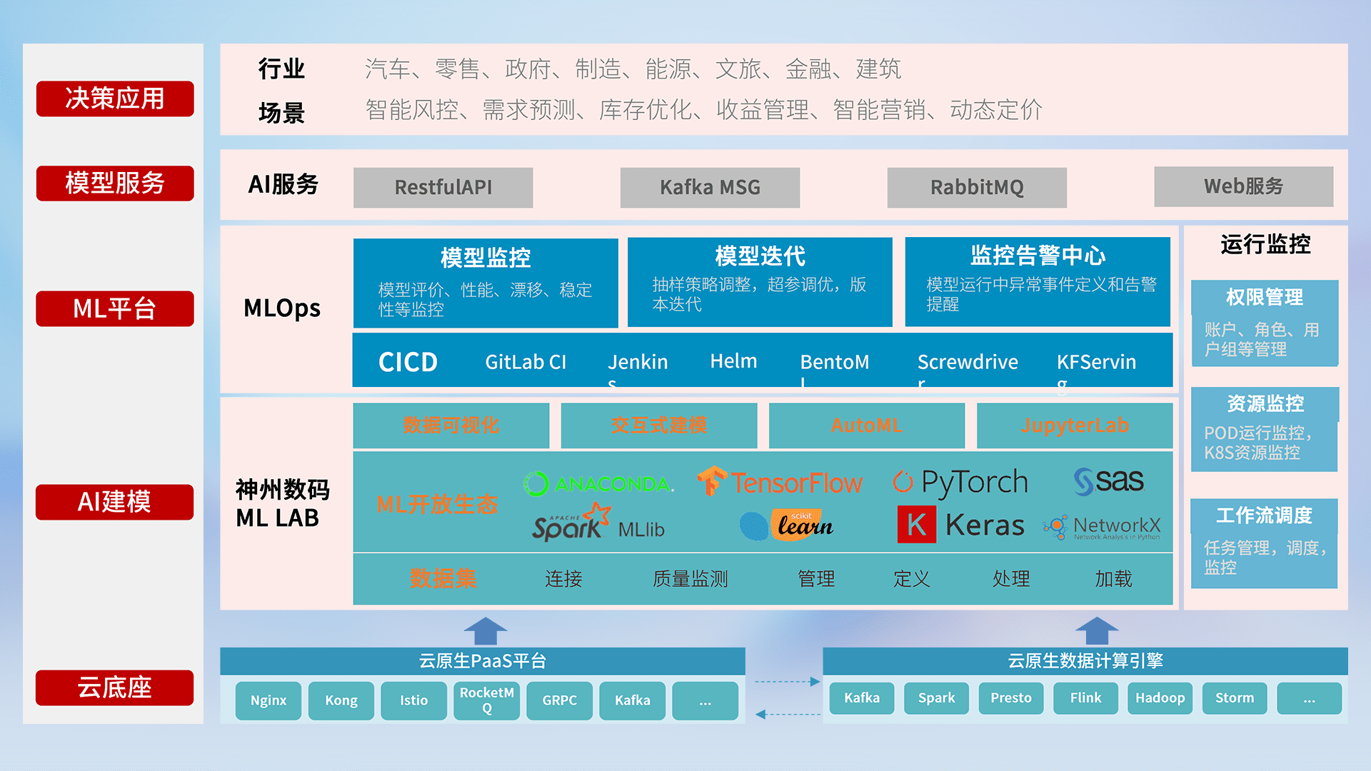 数据+模型双引擎驱动,,,面向智能服务场景,,快速灵活利用AI技术,,,,支持业务决策,,,助力企业智能化转型破局。。。